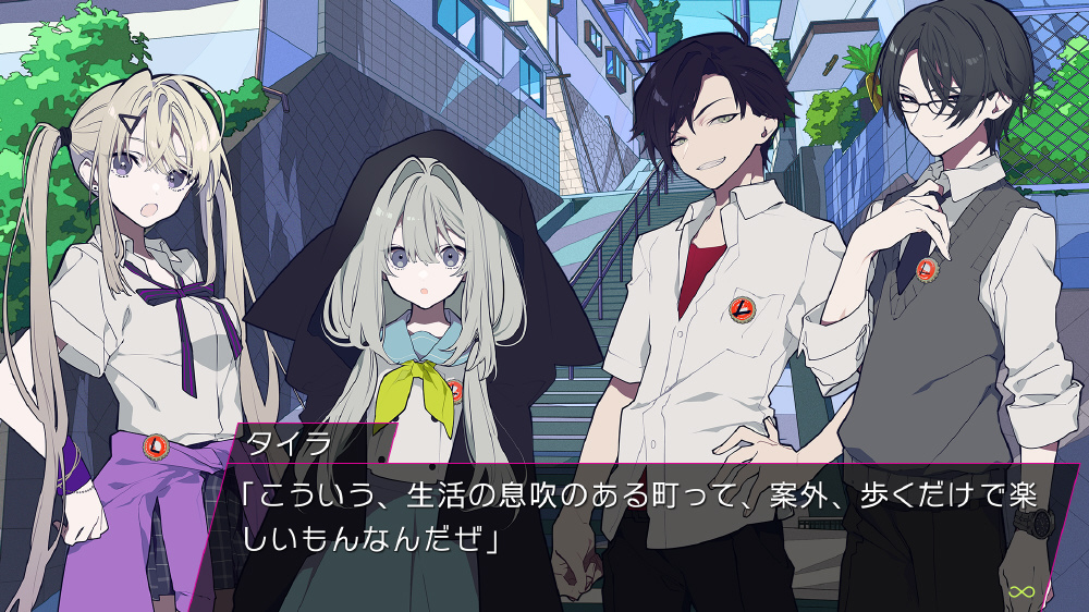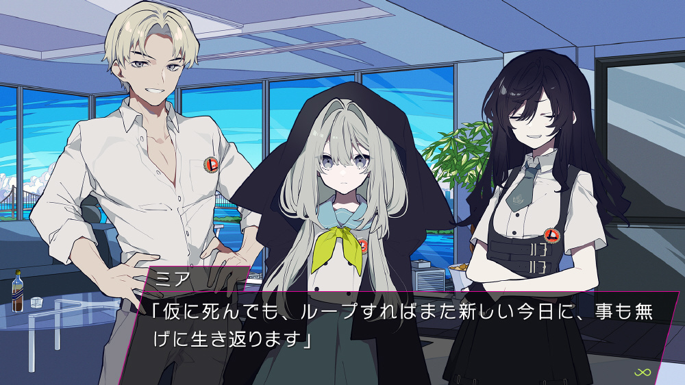 『LOOPERS』は、シナリオ、グラフィック、音楽、音声で贈る「キネティックノベル(電子小説)」です。