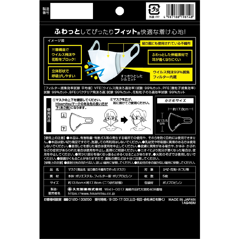 | 商品名 | 貼り薬の不織布で作ったマスク(耳掛けタイプ)小さめサイズ 5枚入 |