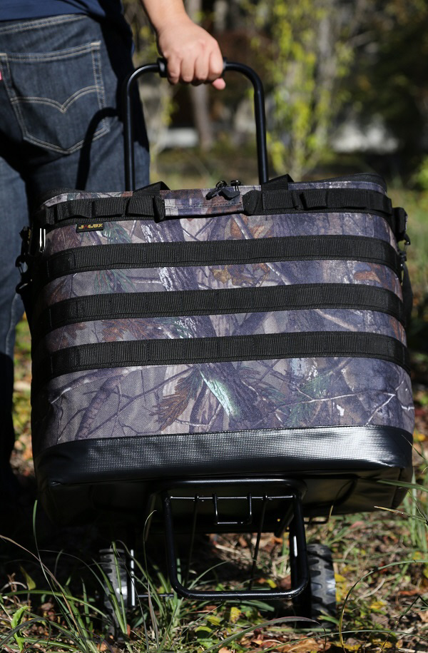 奥行と高さにこだわりキャリーカートに付けられるようにしました。