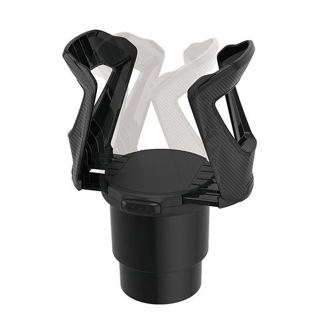 ホールドアームが可動することで、純正カップホルダーに置くことができないペットボトルやマイボトル等を置くことができる。