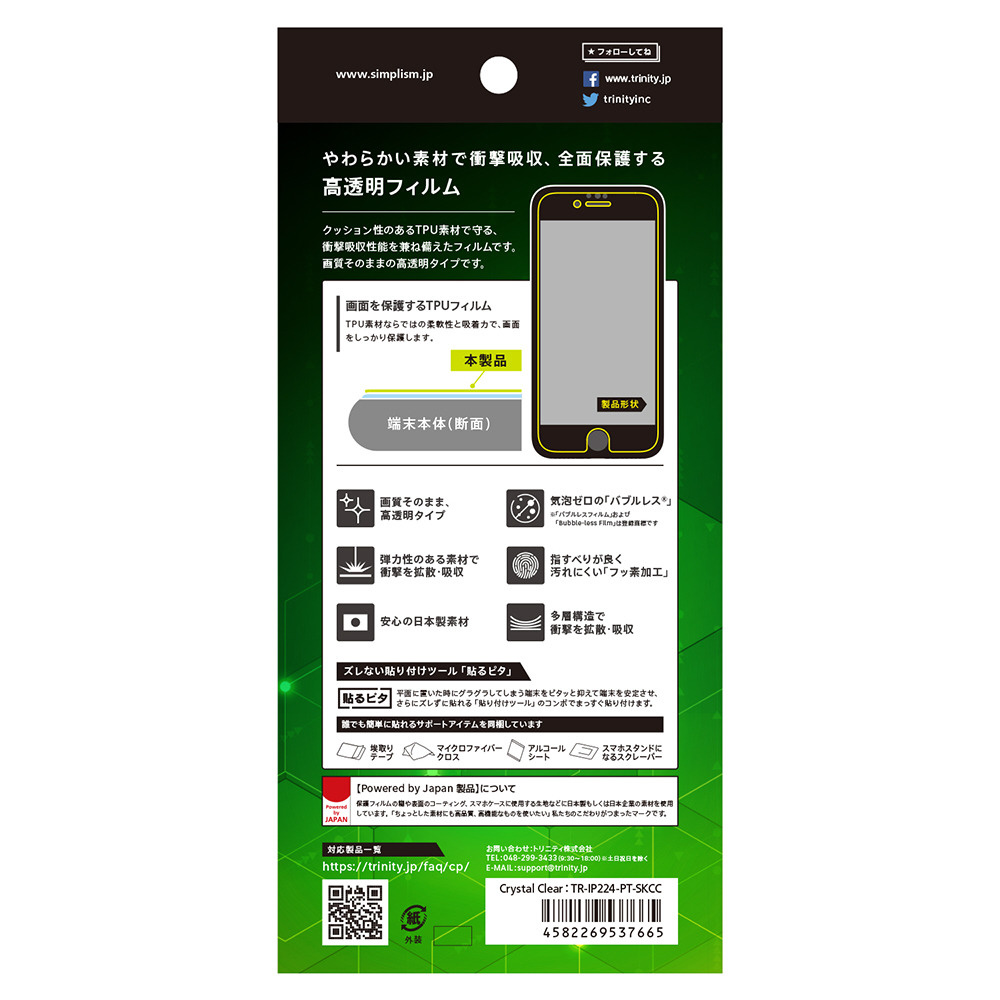 iPhoneSE(第3・2世代)/8/7 衝撃吸収 TPU 画面保護フィルム 光沢 TR-IP224-PT-SKCC