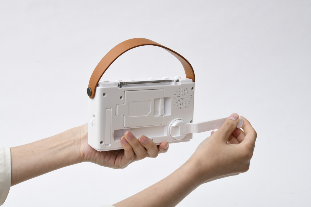 手回し充電テレビ パールホワイト JYTM-RTV430-PW [ワイドFM対応 /防滴ラジオ /テレビ/AM/FM] 【864】
