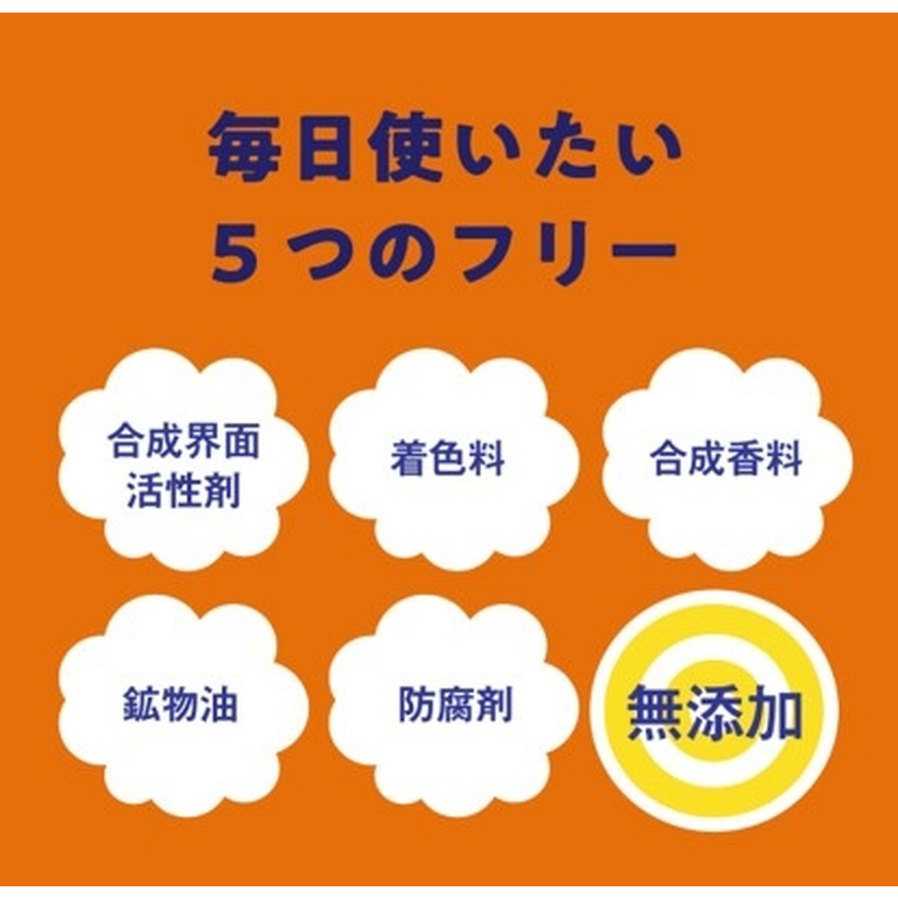 ドットウォッシーと同じく、ナチュラルにこだわり「合成界面活性剤」「着色料」「合成香料」「鉱物湯」「防腐剤」無添加です。