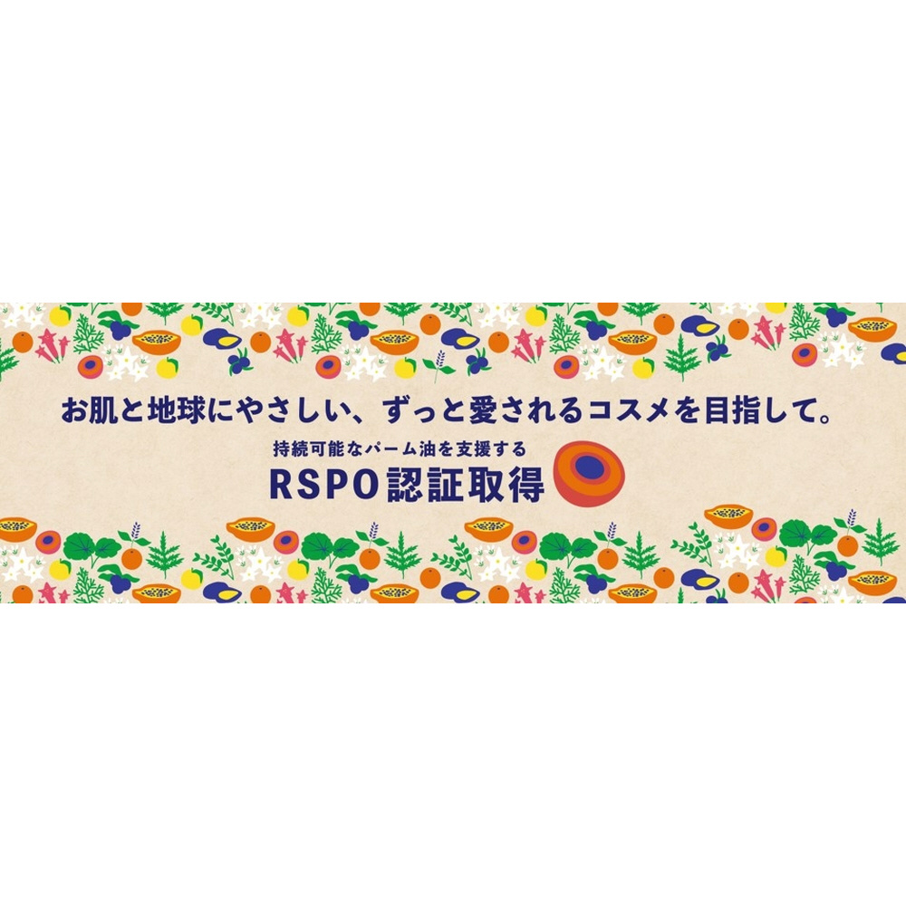 また、ナチュラル素材を使った商品だからこそ、環境に配慮したずっと愛されるコスメ を目指し、持続可能なパーム油を支援するRSPO認証を取得、責任ある森林の木材を使用するFSC認証をうけた紙を使用しました。