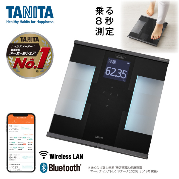 タニタ初の無線LAN(Wi-Fi)通信、充電式モデルの体組成計。