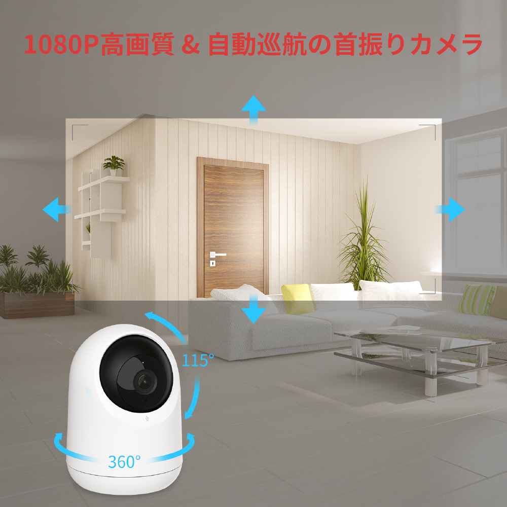 ペットがリビングで遊んでいる間、360°回転して記録します。また、不審者がご自宅に侵入した瞬間、ただちに追跡を開始し