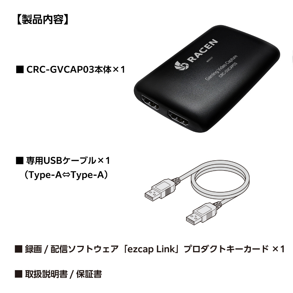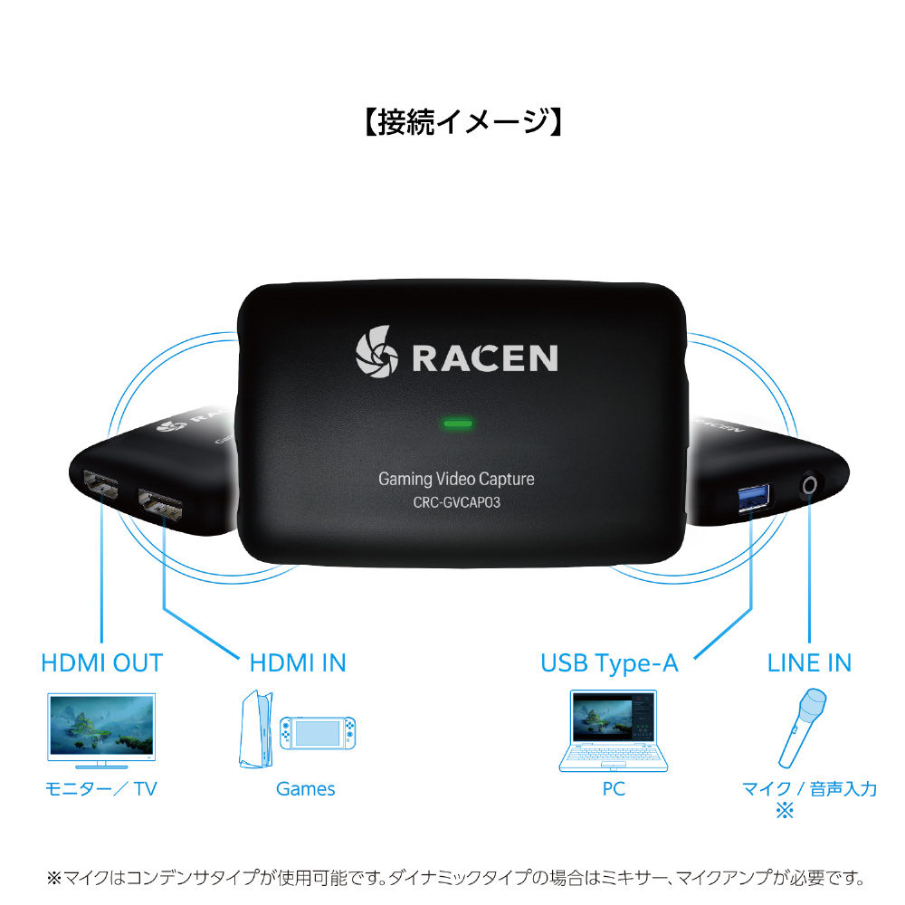 | 商品名 | ゲーミングビデオキャプチャ Light RACEN ブラック CRC-GVCAP03 |