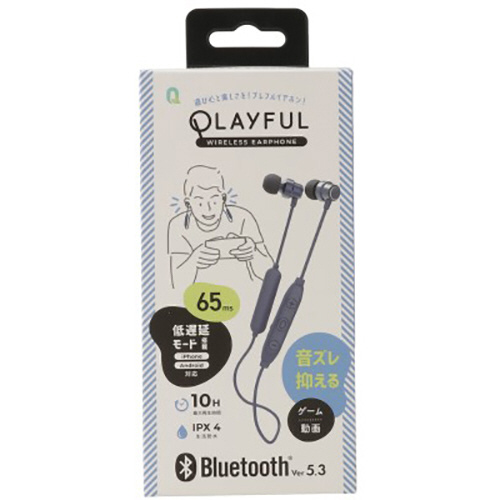 ブルートゥースイヤホン カナル型 PLAYFUL ブルー QB-081CBL [ネックバンド /Bluetooth対応]