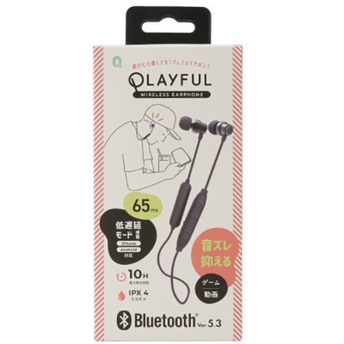 ブルートゥースイヤホン カナル型 PLAYFUL ブラック QB-081CBK [ネックバンド /Bluetooth対応]