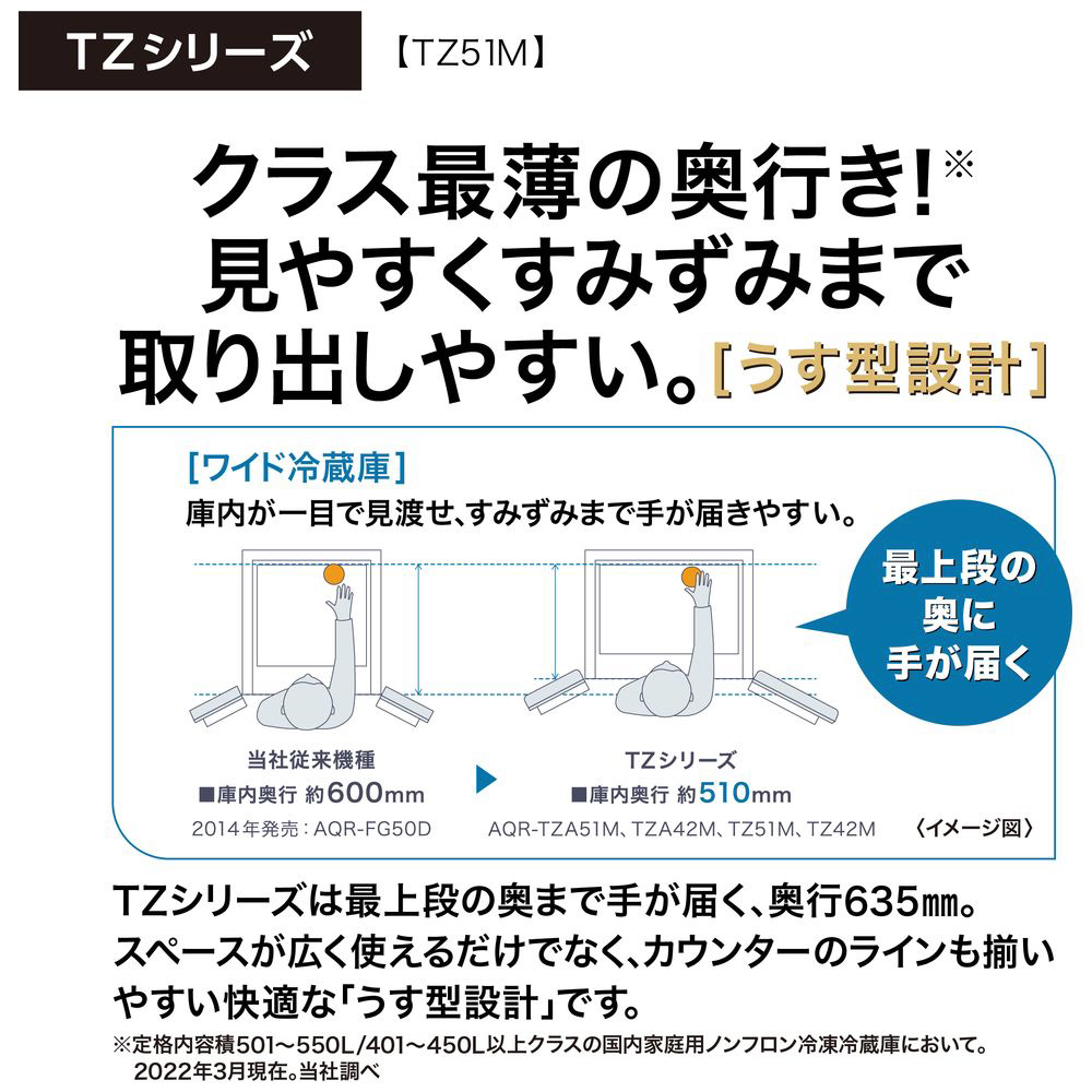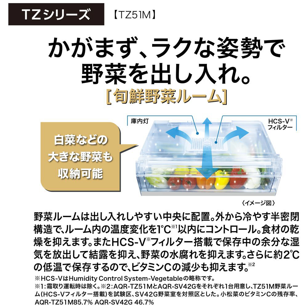 | 商品名 | 冷蔵庫 ダークウッドブラウン AQR-TZ51M-T [512L /4ドア /観音開きタイプ] 【基本設置料金セット】 |