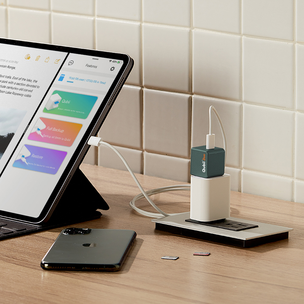 毎日の充電中に、旅行先での充電中に、Qubiiは自動でしっかりバックアップします。