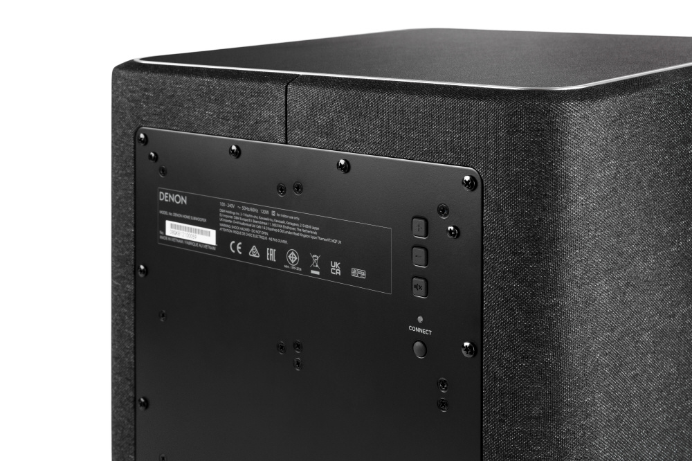 Denon Home Subwoofer は、Denon Home シリーズのホームサウンドバーやワイヤレススピーカーにWi-Fi で簡単に接続して、体の芯まで響くような、深く、パワフルな低音を追加することができます。接続は壁のコンセントに電源コードを接続するだけ。他のDenon Home シリーズの製品と同様に、柔らかな印象を感じさせるラウンド形状とグレーのファブリックによってインテリアに品良く馴染みます。