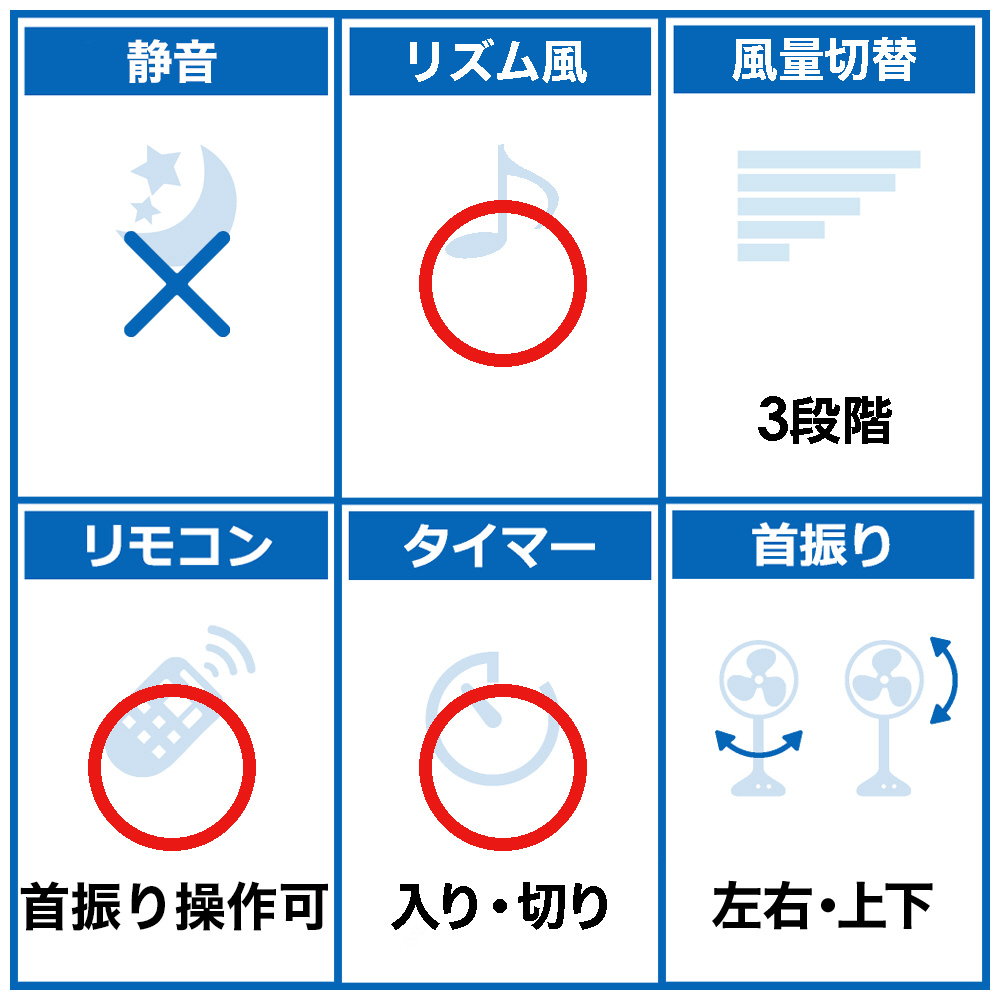 | 仕様1 | 30cm リビング扇風機 立体首振り機能 リモコン |