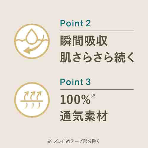 ●100%通気素材採用(ズレ止めテープ部分除く)。経血はしっかり吸収するのに、つけている間、ムレを逃し続けて快適。