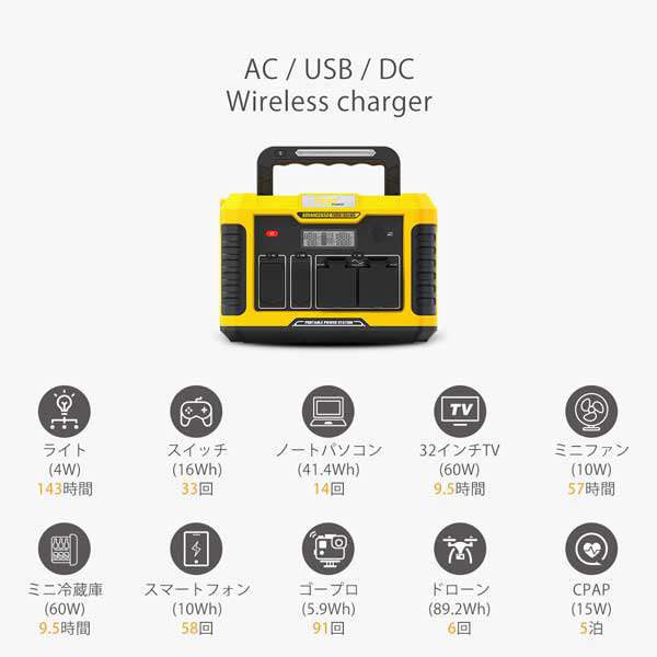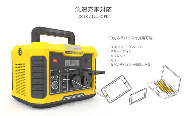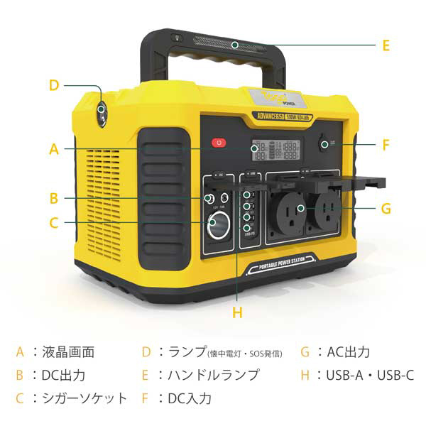 ポータブル電源 ADVANCE650 AD650Y [10出力 /DC充電・ソーラー(別売) /USB Power Delivery対応]