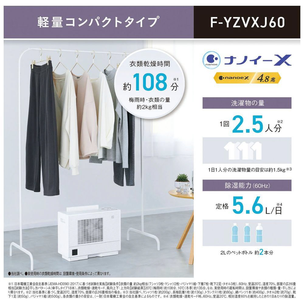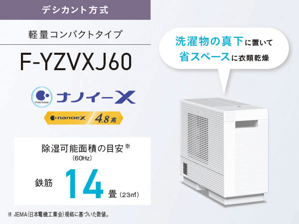 衣類乾燥除湿機 クリスタルホワイト F-YZVXJ60-W [デシカント(ゼオライト)方式 /木造7畳まで /鉄筋14畳まで]