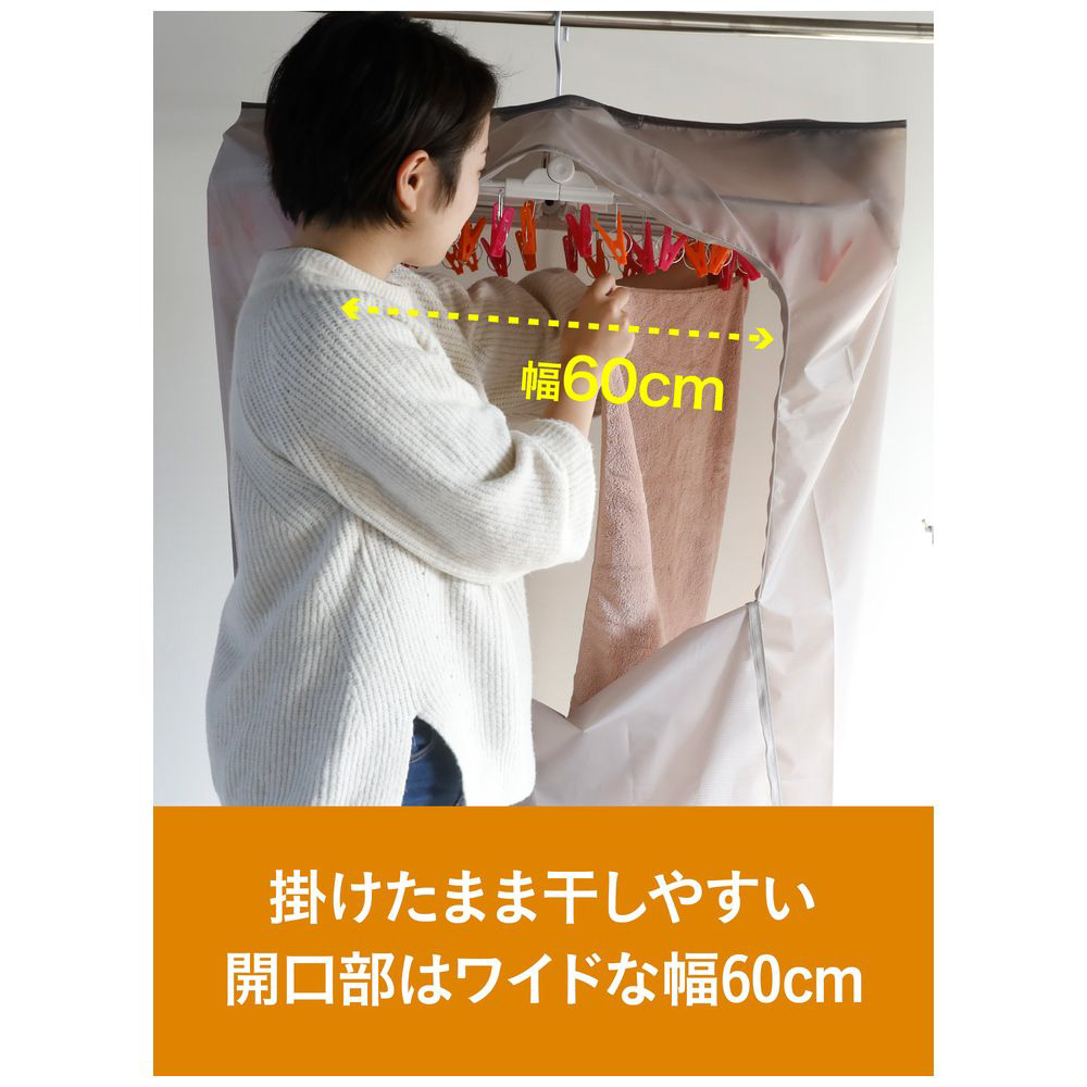 ダブルジップ&フルオープン仕様なので、洗濯ハンガーの取り付けがしやすい上、カバー内の奥まで見えるので手元を確認しながら干せます。