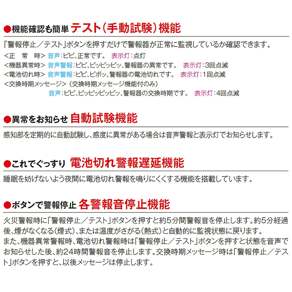 | 電池切れお知らせ機能 | 自動電池切れ警報機能付(手動試験可能) |