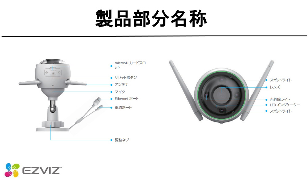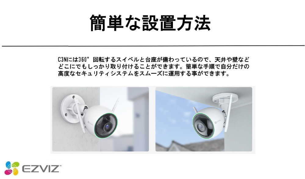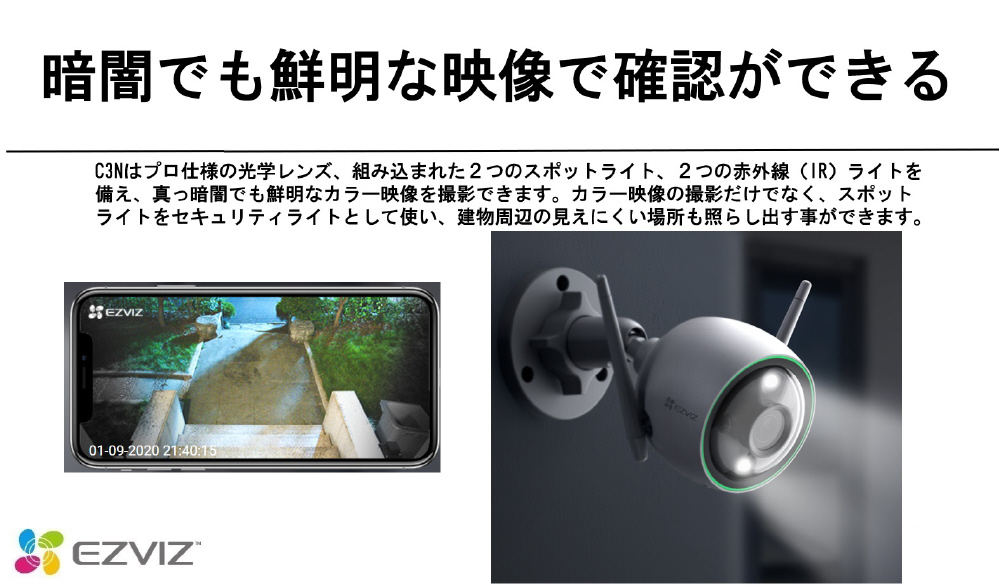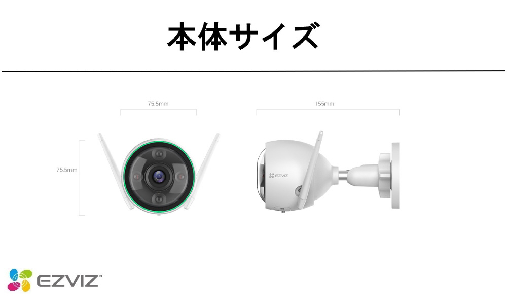 EZVIZ CS-C3N 屋外用 防犯カメラ ネットワークカメラ ナイトビジョンタイプ 外壁取り付け簡単 WIFI対応 DC12v給電式 CS-C3N [無線 /暗視対応 /屋外対応]