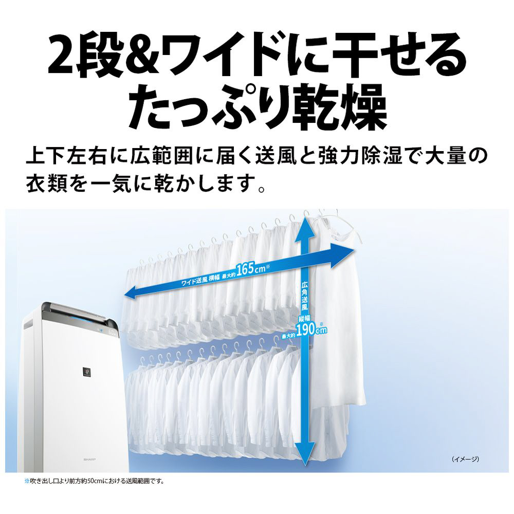プラズマクラスターの風が、ニオイを寄せ付けず、パワフルに乾かす「衣類乾燥」除湿機。
