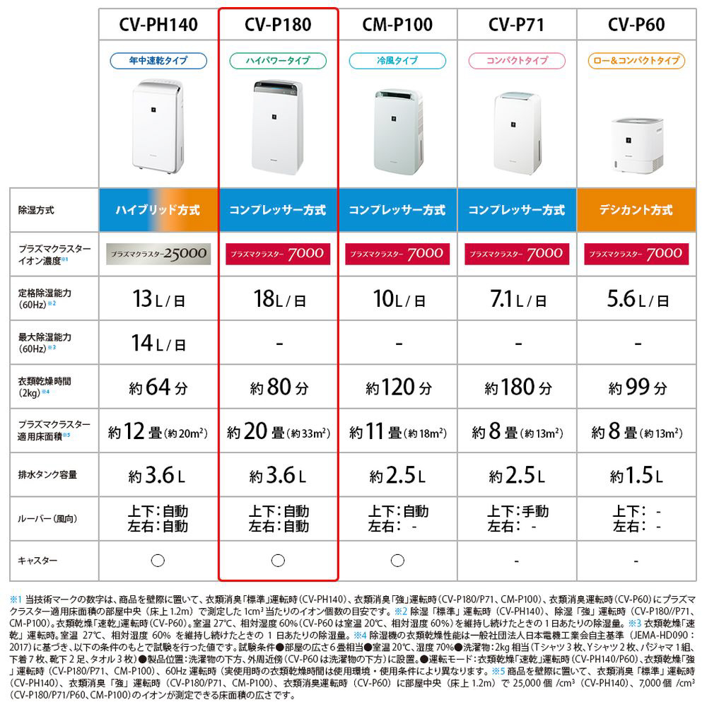 衣類乾燥除湿機 ホワイト系 CV-P180-W [コンプレッサー方式 /木造23畳まで /鉄筋45畳まで]