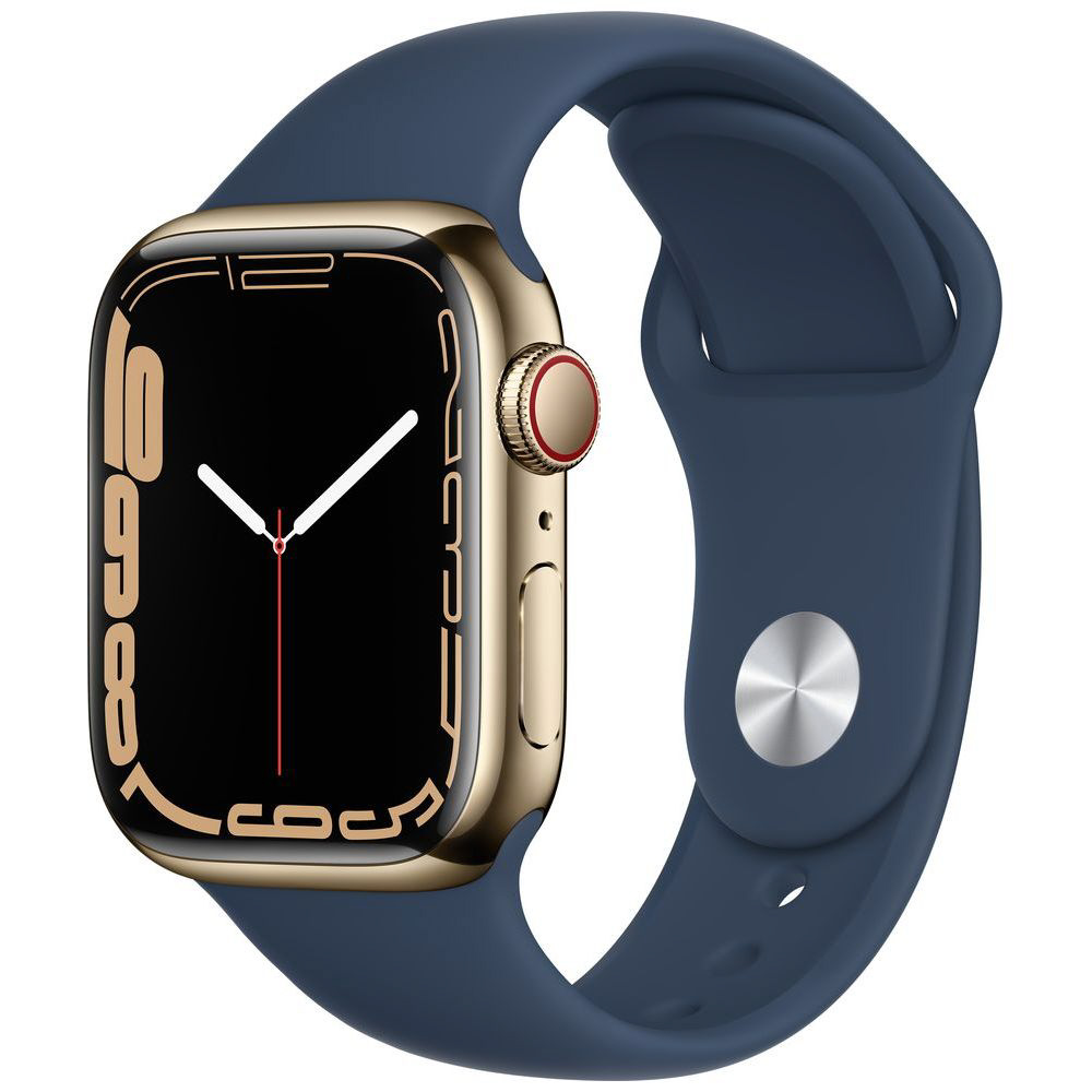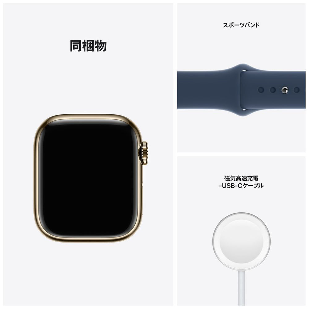 Apple Watch Series 7(GPS + Cellularモデル)- 41mmゴールドステンレススチールケースとアビスブルースポーツバンド - レギュラー ゴールドステンレススチール MN9K3J/A
