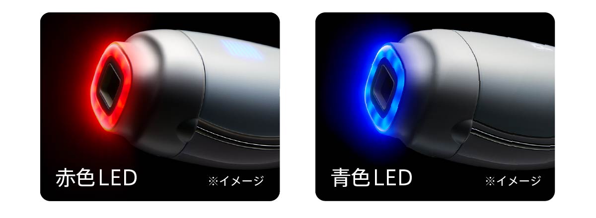 LEDヘッドを新搭載し、エステでも使われる赤色LEDと青色LEDを照射。