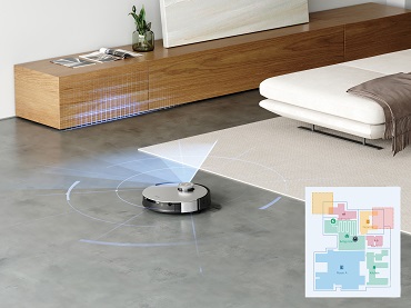 D-ToF距離測定センサーが迅速かつ正確に距離を測定し、マップと自分位置をリアルタイムに把握。光の影響も受けにくく、狭い場所や間取り、家具の位置もしっかり認識し、隅々まで効率的に走行します。