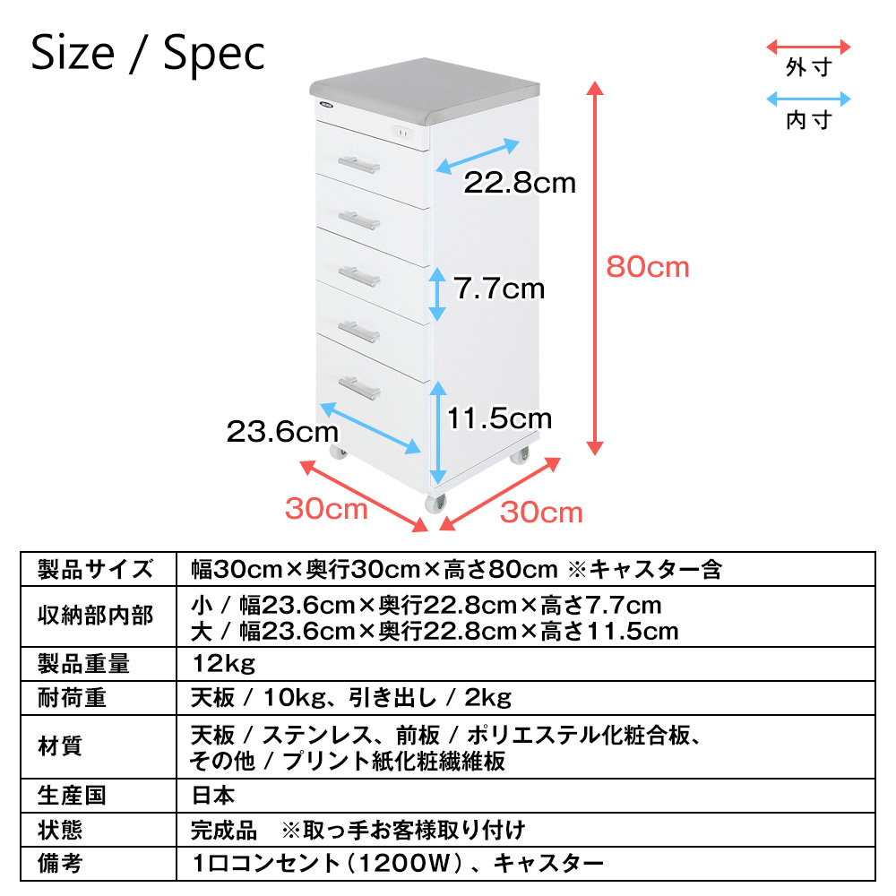 ステンレスワゴン(幅30cm×奥行30cm×高さ80cm) ホワイト SK-30
