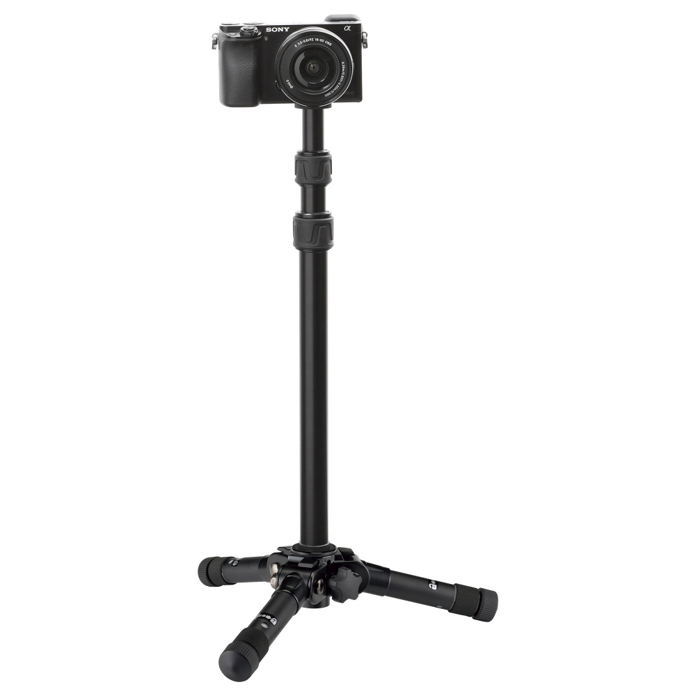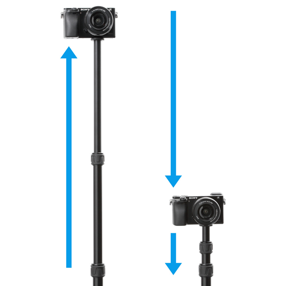 コンパクトな一脚として、また三脚や一脚に接続して延長棒やポールとして活用できる伸縮式ポール。