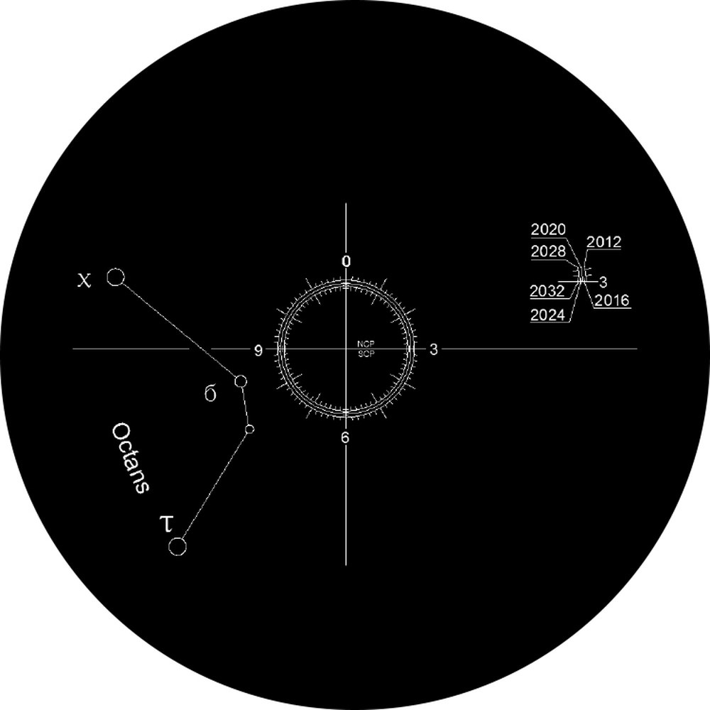スマートフォンのGPS機能、時計を使って、極軸望遠鏡のどこに北極星を入れればいいか、スマホ画面内に表示してくれるので、極軸合わせの手間が省け容易にできるようになりました。