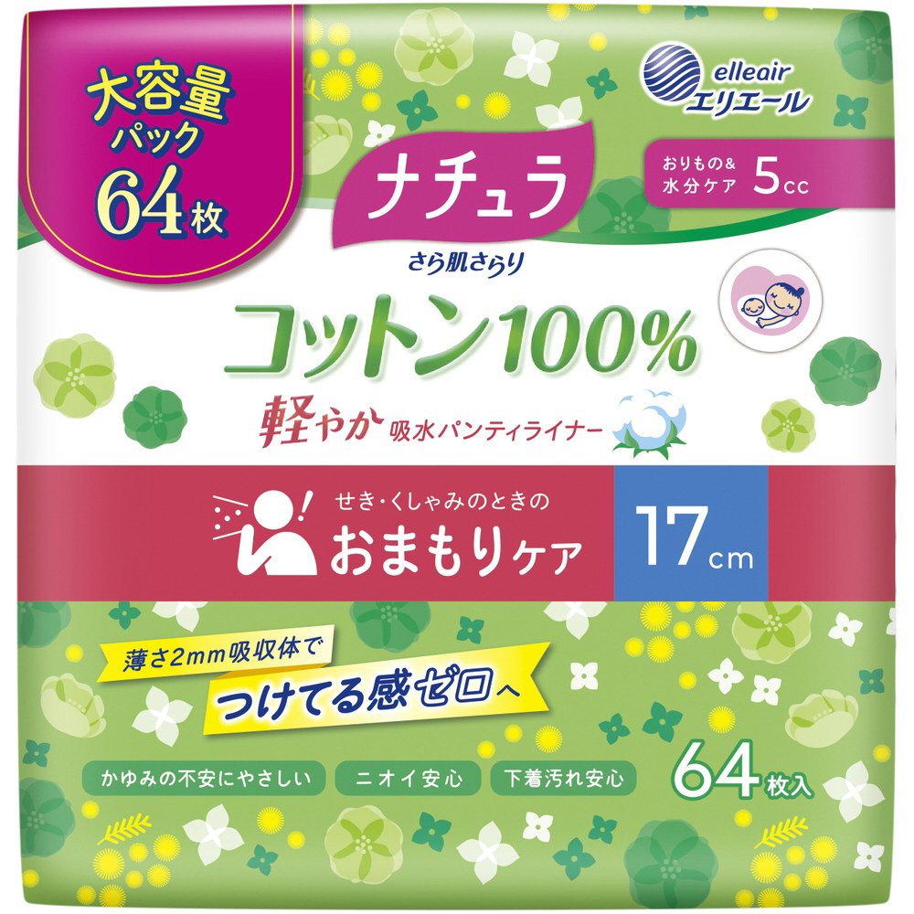 ナチュラ さら肌さらり コットン100%軽やか吸水パンティライナー 17cm 5cc 大容量64枚入