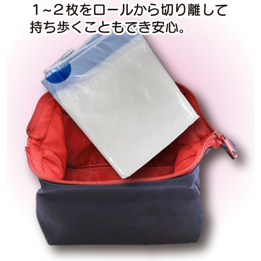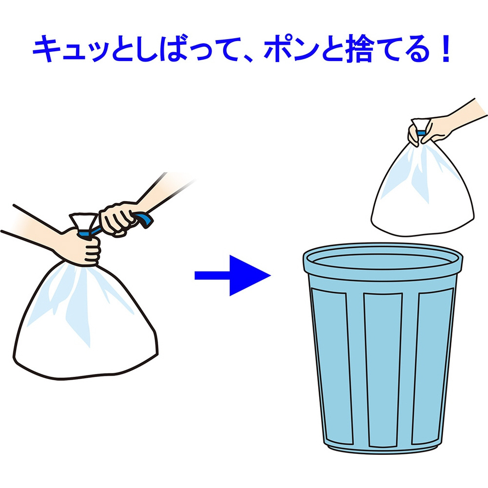 キュッとしばって、ポンと捨てる!ヒモ付きで簡単に密閉廃棄ができる、ポータブルトイレ。