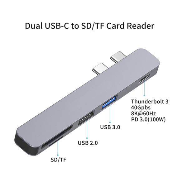 商品名 MacBook Pro / Air用[USB-Cx2 オス→メス カードスロットx2 / USB-Ax2 / Thunderbolt 3] USB PD対応 100W ドッキングステーション HDX-C5M [USB Power Delivery対応]