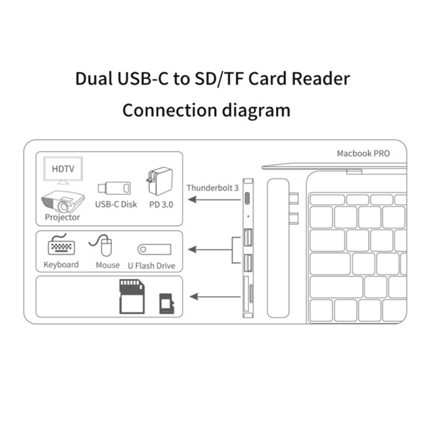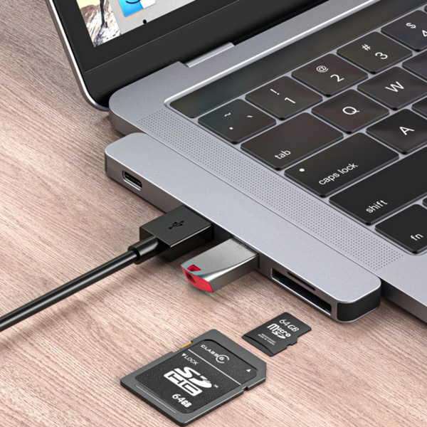 MacBook Pro / Air用[USB-Cx2 オス→メス カードスロットx2 / USB-Ax2 / Thunderbolt 3] USB PD対応 100W ドッキングステーション HDX-C5M [USB Power Delivery対応]