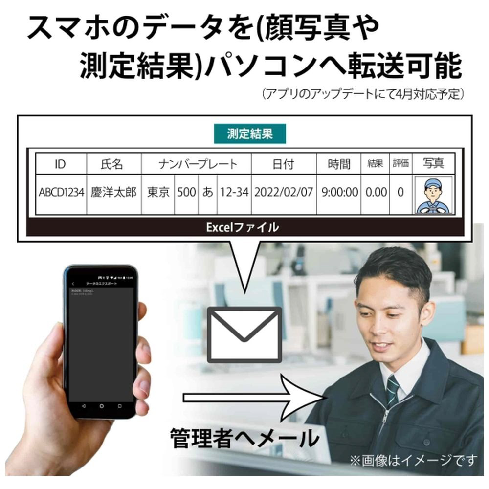 スマホにBluetooth接続で検査結果を転送可能なアルコールセンサーです。