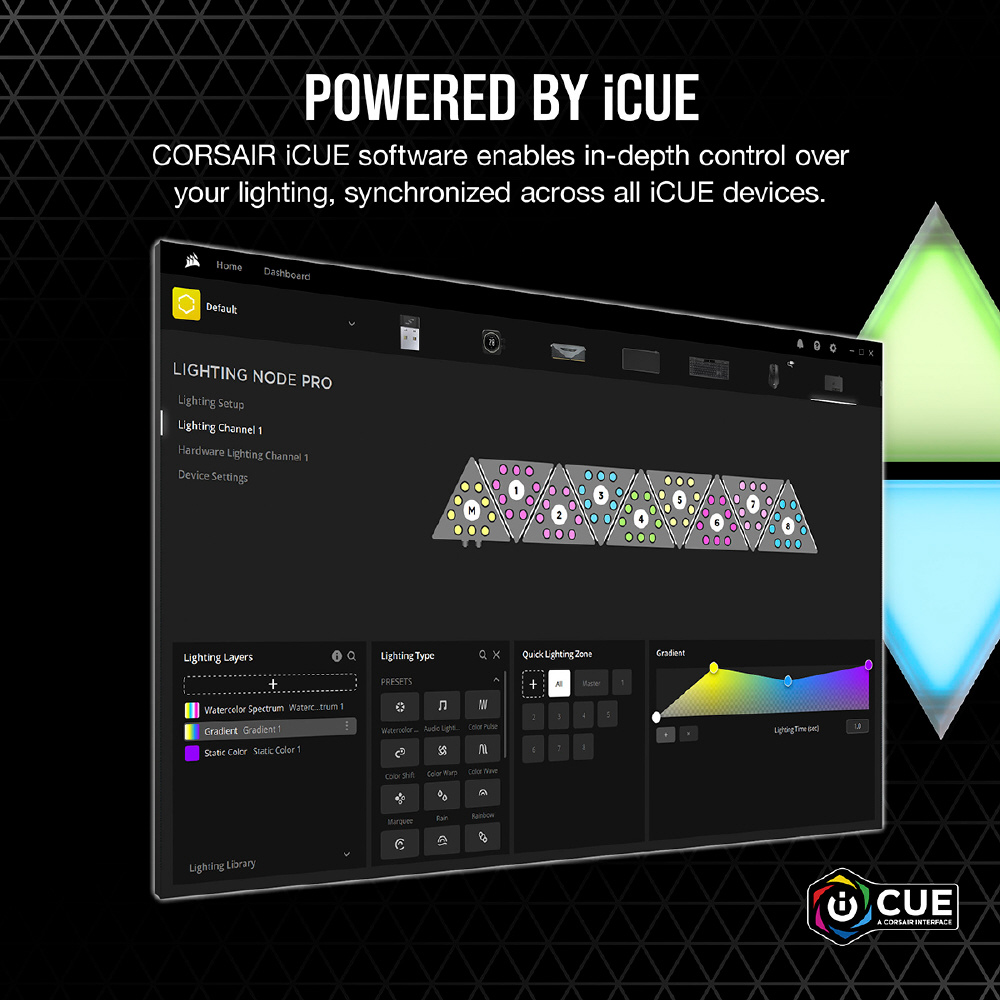 PCの空きスペースを彩る RGBライティングドレスアップキットインテリジェントコントロールシステム iCUE対応動画やゲーム、音楽に連動するダイナミックライティング他社製品には無いデザイン・ドレスアップCORSAIR iCUE LC100