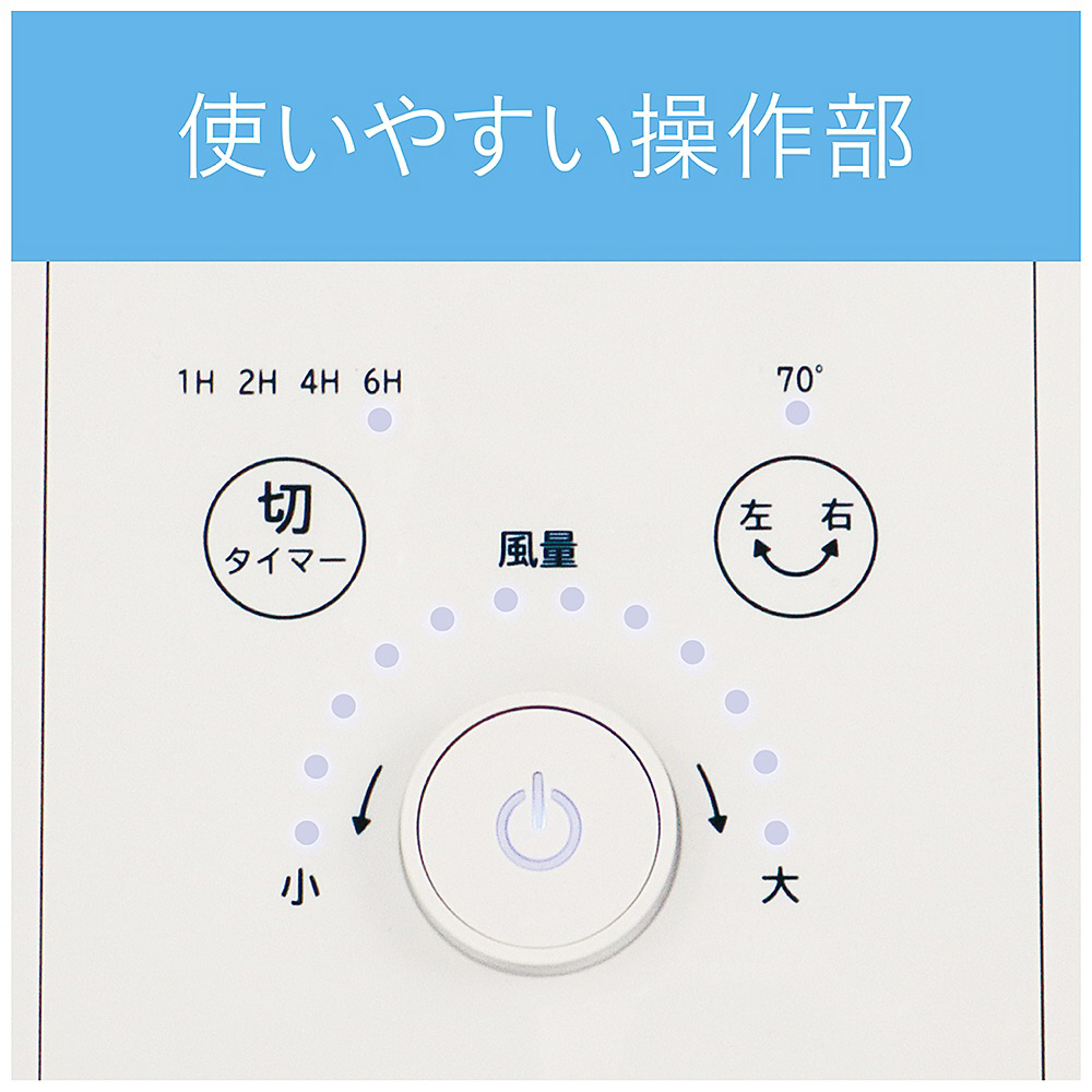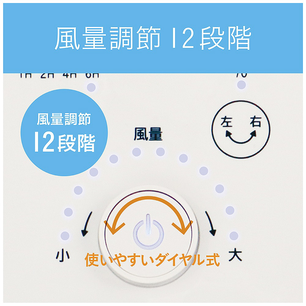DCモーター搭載、風量12段階調節。切タイマー1・2・4・6時間。