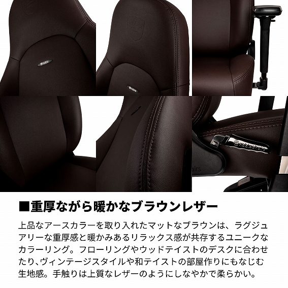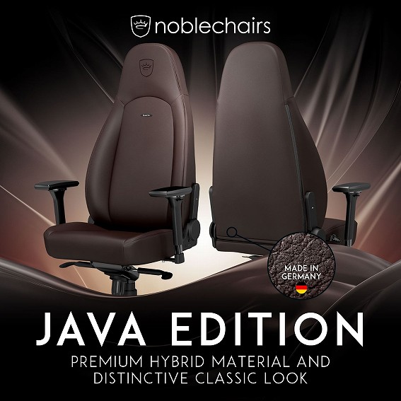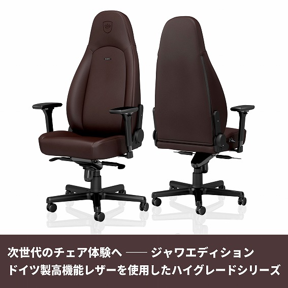 高機能素材「ハイブリッドPUレザー」を使用したハイグレードシリーズに、新カラー「ジャワエディション」が登場。noblechairsの定番モデルを洗練されたマットブラウンで仕上げ、クラシカルで柔らかな印象のチェアが完成。