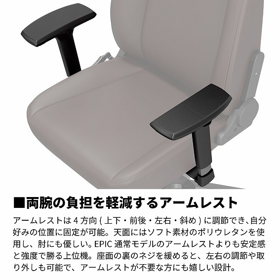 ・両腕の負担を軽減するアームレスト