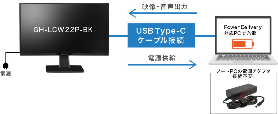 | 商品名 | USB-C接続 PCモニター ブラック GH-LCW22P-BK [21.5型 /フルHD(1920×1080) /ワイド] |