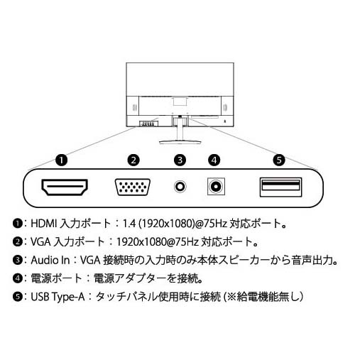 IPS系パネル搭載、10点マルチタッチ対応23.8インチFull HD(1920 x 1080)解像度に対応液晶モニター