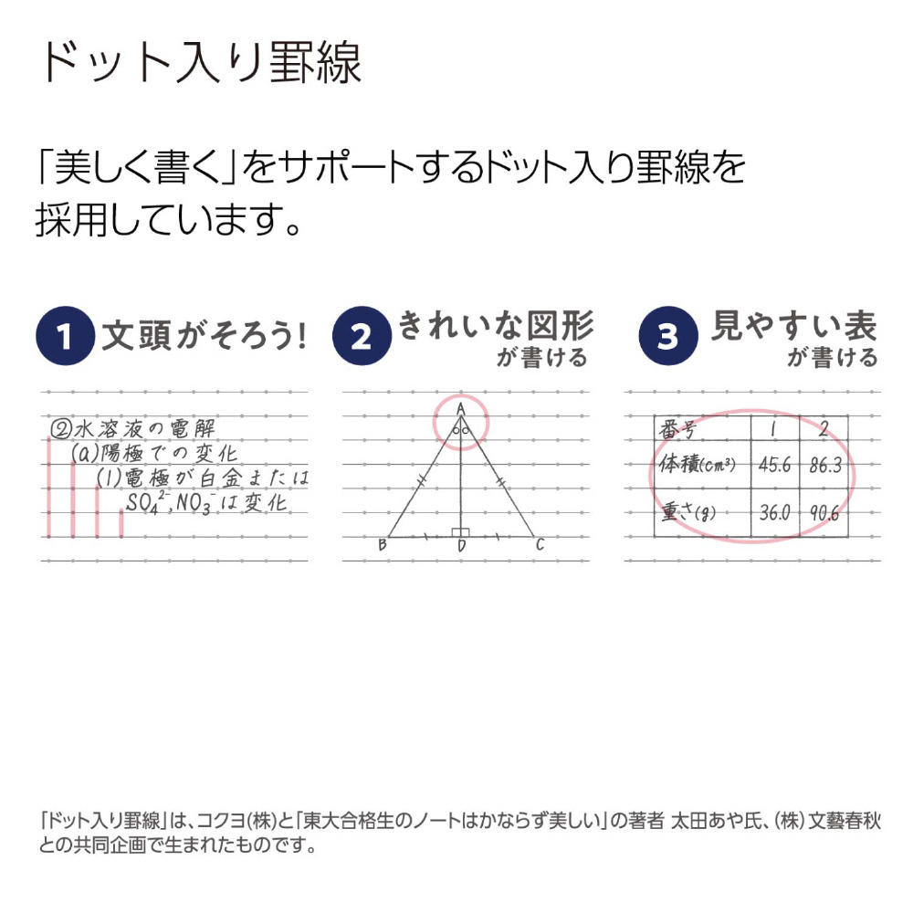 ●「美しく書く」をサポートするドット入り罫線