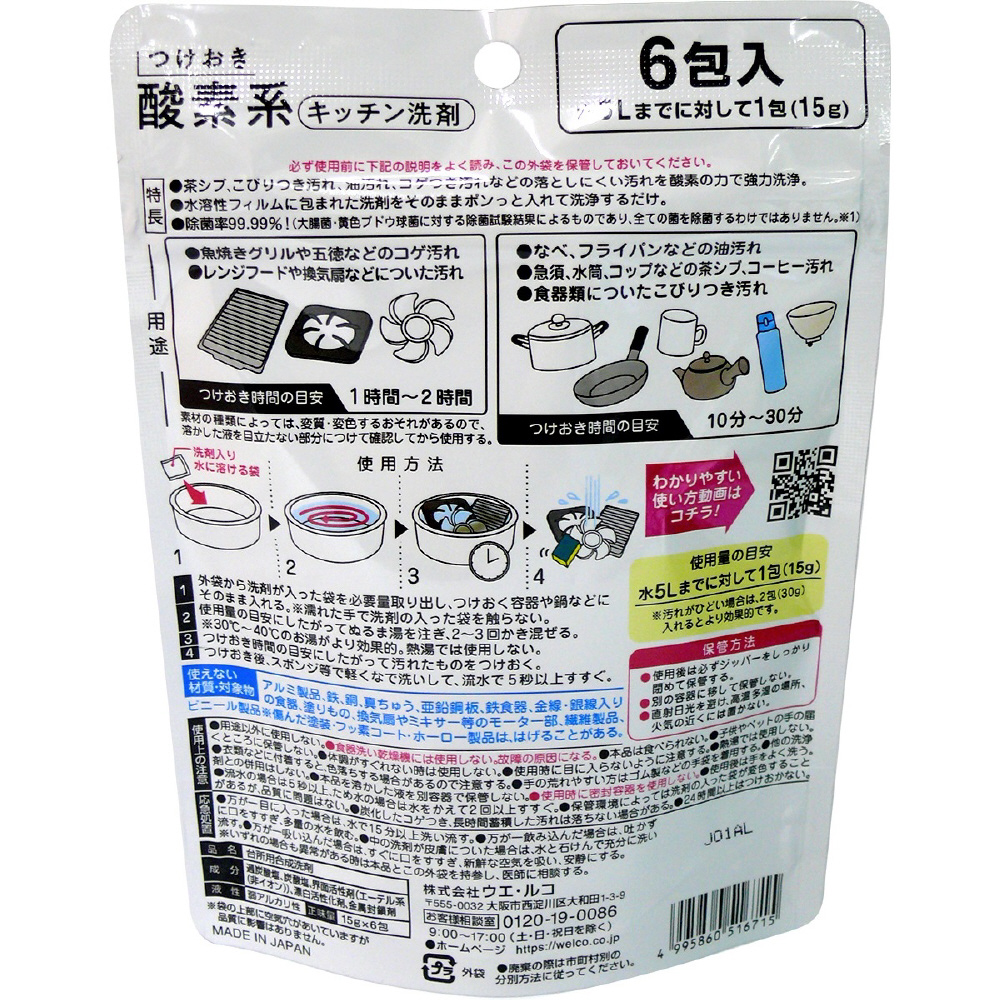 | 商品名 | つけおき酸素系キッチン洗剤 90g(15g×6包入) |