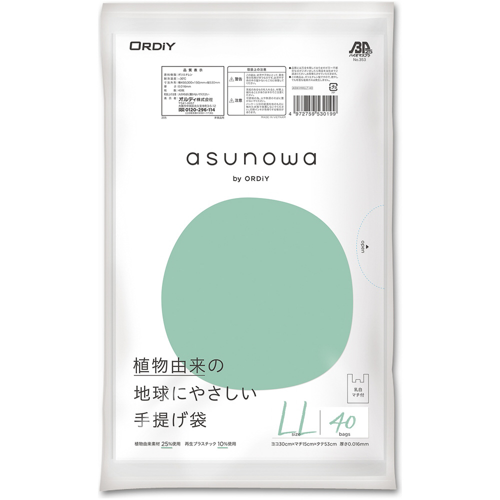 | 商品名 | asunowa 手提げ袋 LL 乳白 40枚入 |
