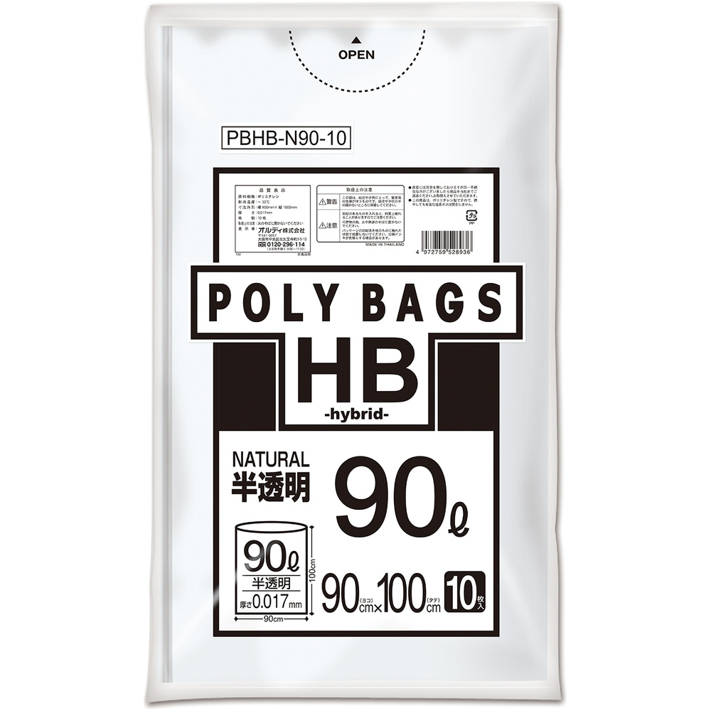 | 商品名 | ポリ袋 POLY BAGS(ポリバッグ)HB PBHB-N90-10 [90L /10枚 /半透明] |