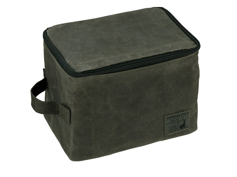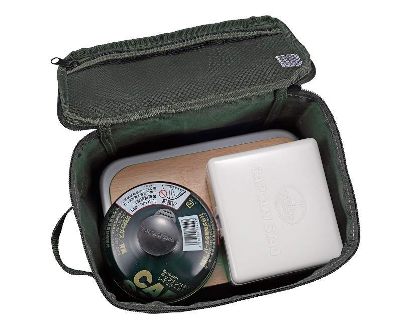 帆布生地の丈夫な収納ケース。別売りの角型クッカーLがぴったり入ります。内側には便利なメッシュポケット付。