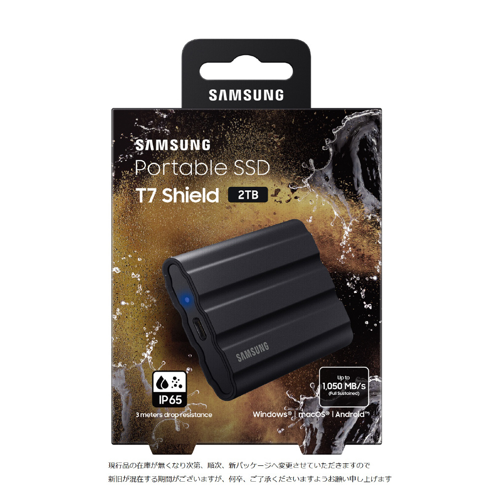 MU-PE2T0S-IT 外付けSSD USB-C+USB-A接続 Portable SSD T7 Shield(Android/Mac/Win) ブラック [2TB /ポータブル型]