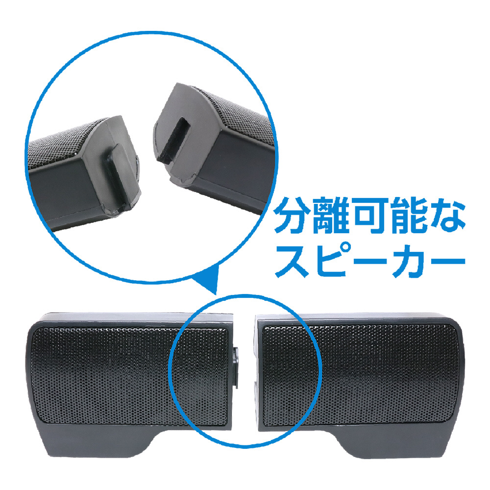 クリップ式とサウンドバー式、2種類の設置をすることができるUSBスピーカーです。