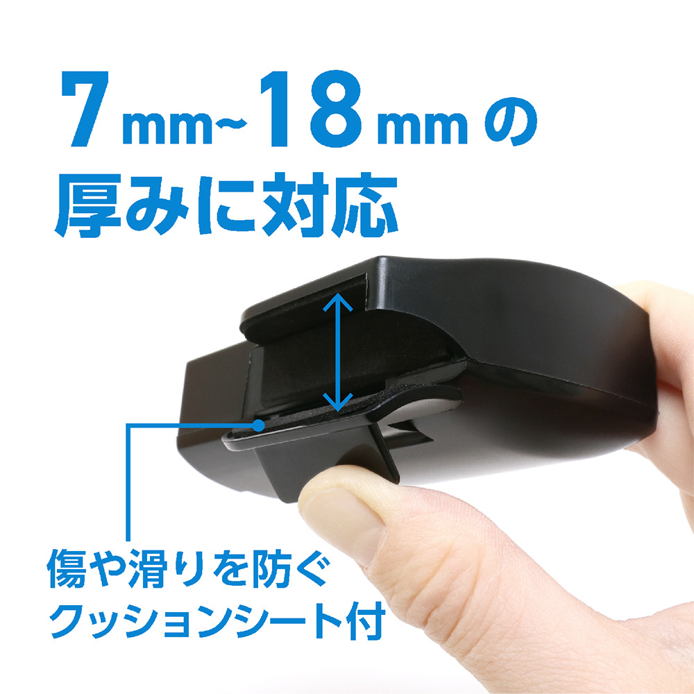 ・クリップでノートPCに設置する場合は、画面部の厚みが7mm〜18mmの範囲内かご確認ください。